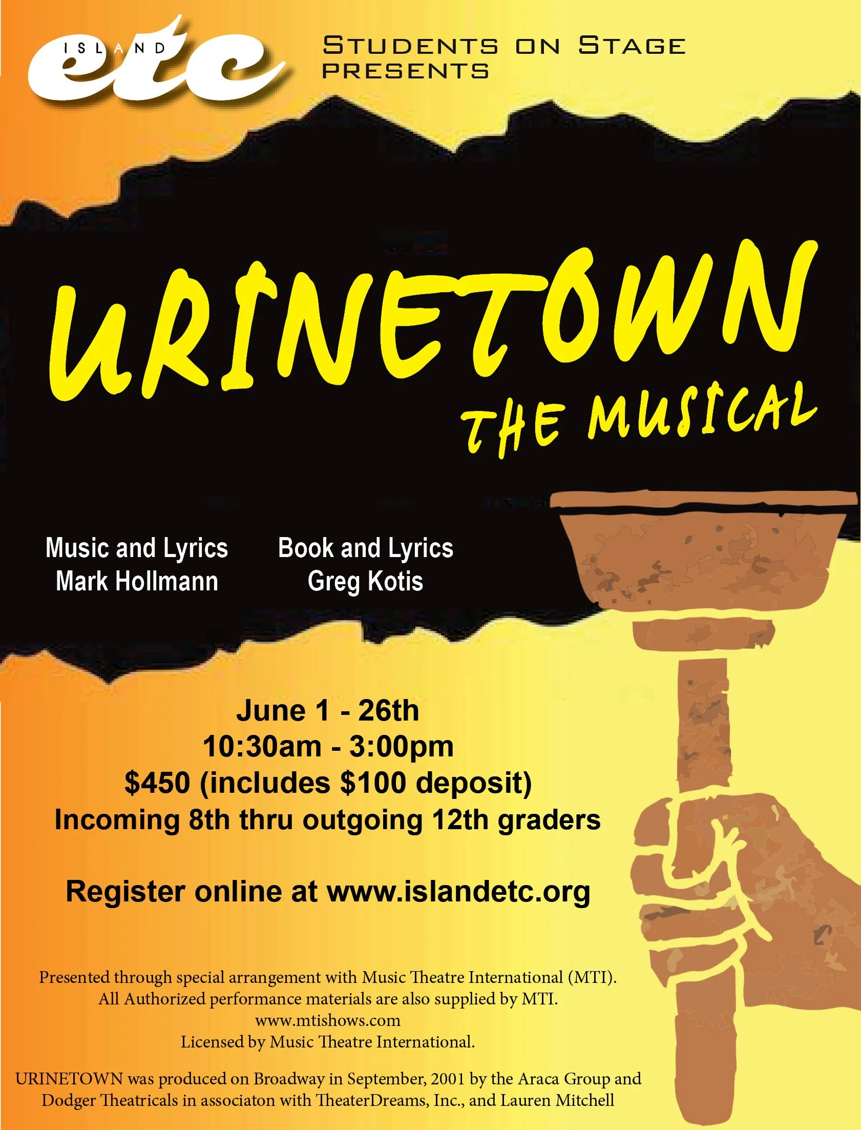 Winner of three Tony Awards, three Outer Critics Circle Awards, two Lucille Lortel Awards, and two Obie Awards, Urinetown is a hilarious musical satire of the legal system, capitalism, social irresponsibility, populism, environmental collapse, privatization of natural resources, bureaucracy, municipal politics, and musical theatre itself! Hilariously funny and touchingly honest, Urinetown provides a fresh perspective on one of America's greatest art forms.